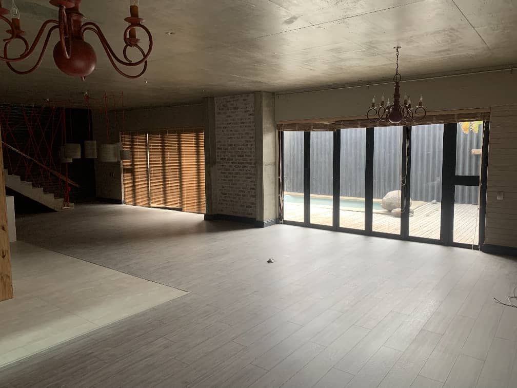 - Open-plan lounge, dining, and TV room leading to a sleek modern kitchen with built-in cupboards and 2 high-end built-in SMEG ovens and a 5 plate gas stove!