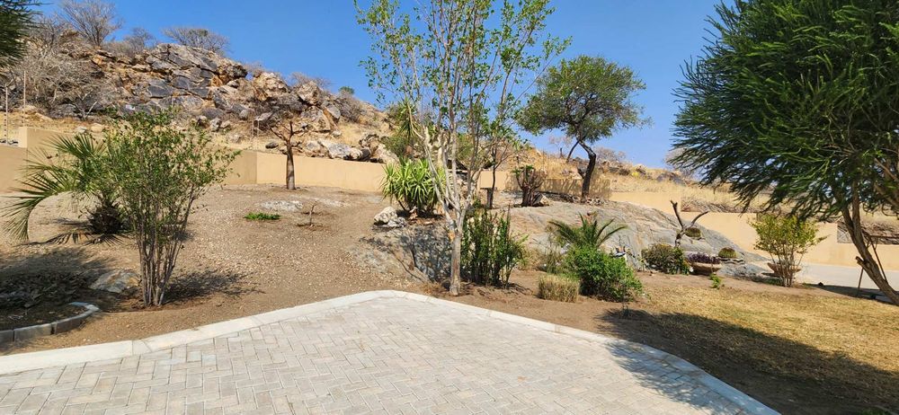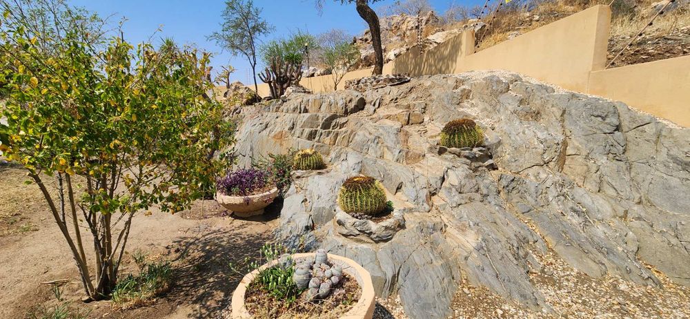 - Well maintained rock garden requiring minimul watering