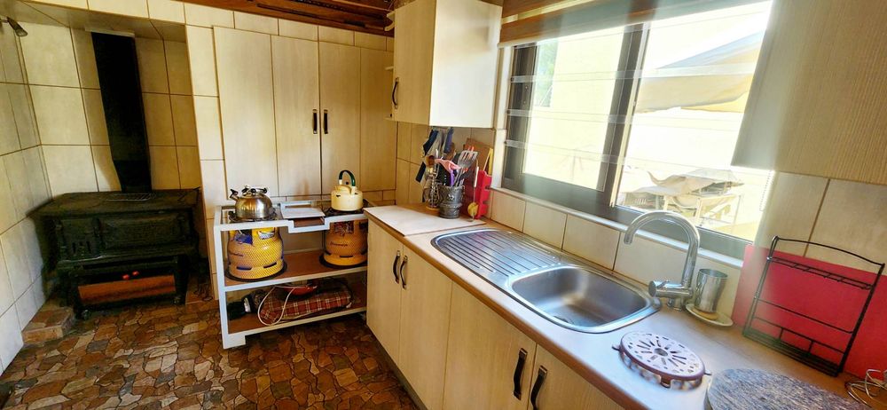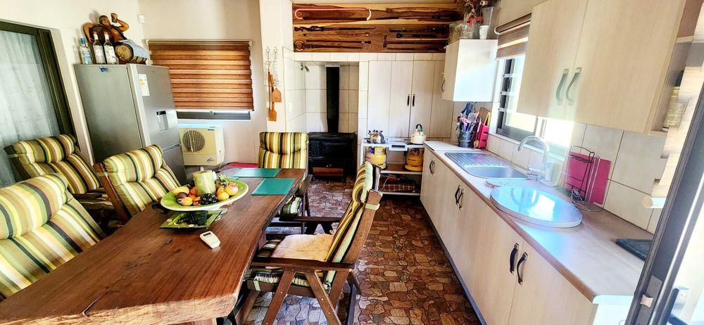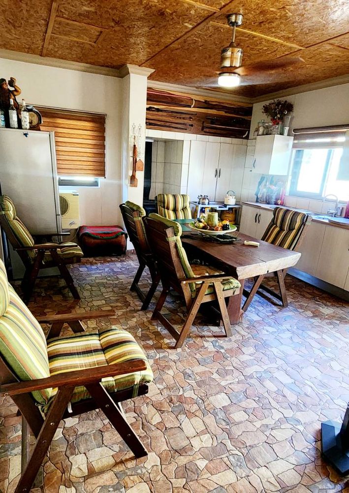 Entertainment room with a built-in braai and coal stove