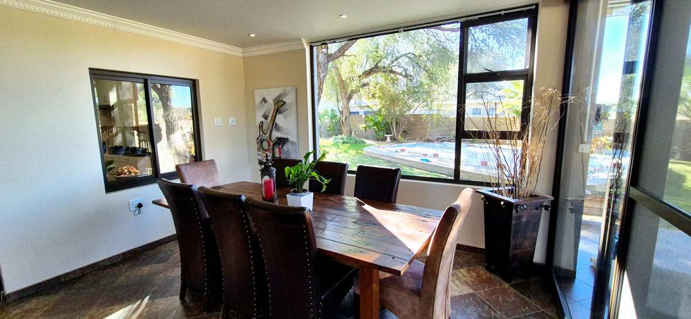 This stunning 3-bedroom, double-storey family home is located in a peaceful and quiet estate of Okahandja! The property boasts a delightful and well-maintained garden with lovely trees and a sparkling swimming pool, perfect for warm days!